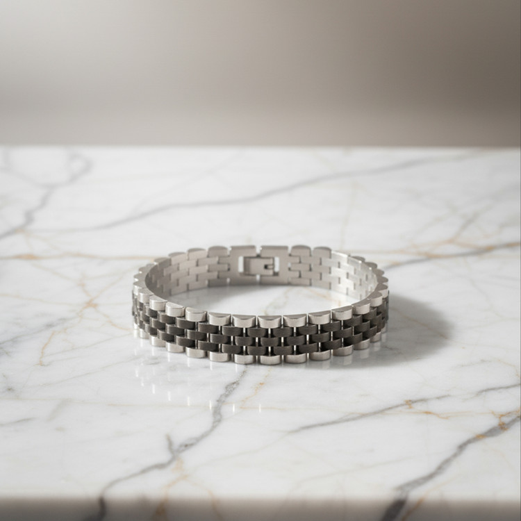 برای داشتن یک ظاهر هماهنگ و جذابتر، این دستبند را با ساعت مشکی استیل یا انگشتر نقرهای ست کنید تا جلوهای خاص و حرفهایتر داشته باشید.